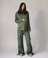 Un set único que vas a querer usar todos los días. Hecho en una tela acanalada verde oscuro, este conjunto lo tiene todo: es cómodo, versátil y con mucho estilo. El sweatshirt tiene una bolsa canguro amplia, perfecta para meter las manos y darle ese toque relajado y urbano. El pantalón de tiro bajo esta diseñado para adaptarse cómodamente durante el embarazo y seguir siendo un favorito después. Lleva jaretas en los tobillos para que puedas llevarlo wide leg o convertirlo en jogger, según tu mood. Desde estar en casa hasta salir con amigas, este set no solo se siente increíble, también te hace ver muy cool.