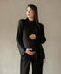 Un set en tela negra texturizada súper cool. Incluye pantalón straight y blusa de manga larga con hombreras, cuello alto y mangas flare. Un look moderno y elegante que te hará ver espectacular en cualquier evento. Y por su color negro súper combinable y atemporal.