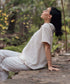Set de dos piezas con silueta cómoda y femenina, pensado para acompañarte durante el embarazo y el postparto. La camisa de manga corta cuenta con botones frontales que facilitan la lactancia, mientras que el pantalón de tiro bajo y de pierna recta con volante en el bajo ofrece un fit relajado que se adapta a la pancita. Confeccionado en un tejido ligero y fresco, es ideal para el día a día.
