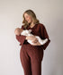 El set que necesitas en tu armario: versátil, cómodo y con mucho estilo. Hecho en una tela ligera con rayas color terracota, es ese tipo de prenda que se adapta a lo que necesites, desde un look casual hasta algo más arreglado. La camisa con botones al frente es ideal para el embarazo y perfecta para lactancia. El pantalón de tiro bajo está diseñado para acompañar el crecimiento de tu pancita sin apretar, y seguir contigo en el posparto. Fresco, funcional y favorecedor, este set es una de esas piezas únicas que no solo se ven bien, se sienten bien y es perfecto para stylearlo de mil maneras.
